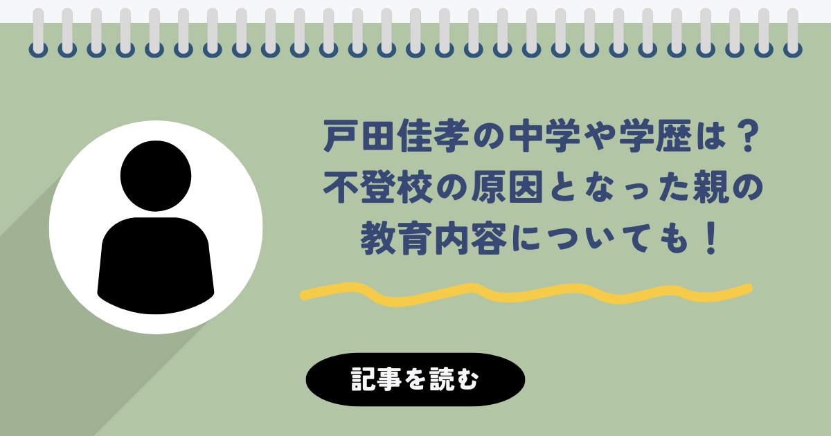 戸田佳孝の中学や学歴は?不登校の原因となった親の教育内容についても!